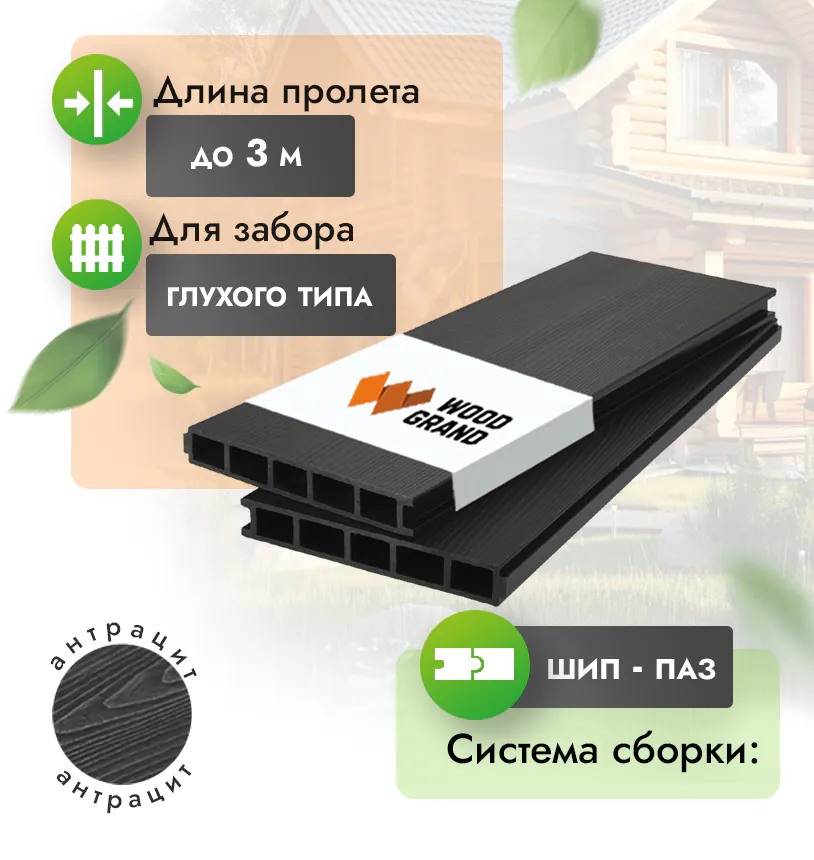 Наши заборные доски из ДПК выдерживают до 3318 кг/м2, влагостойкие, не требуют ухода.